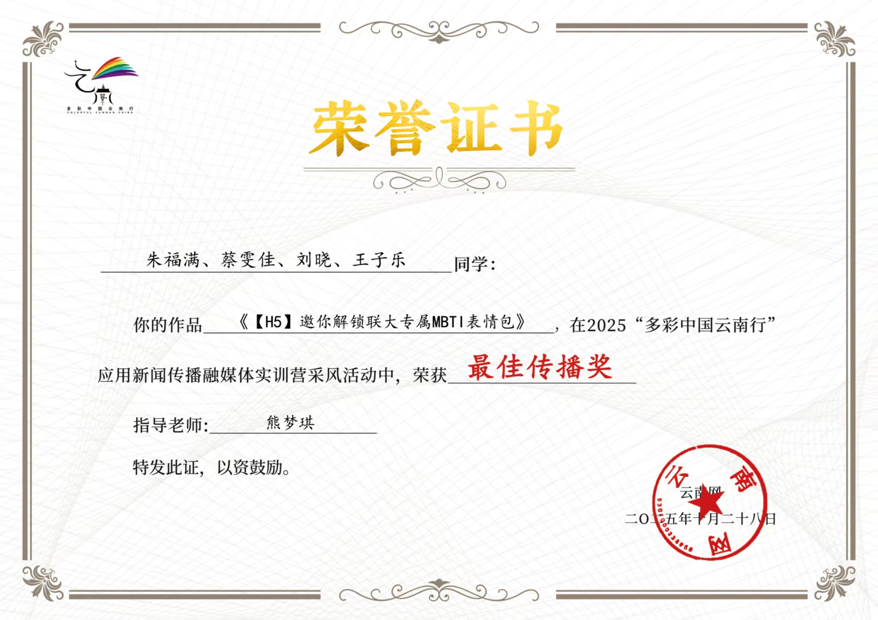 多彩中国云南行 优秀作品奖