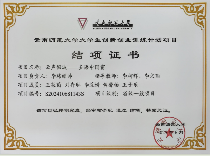 大创省级项目结项证书